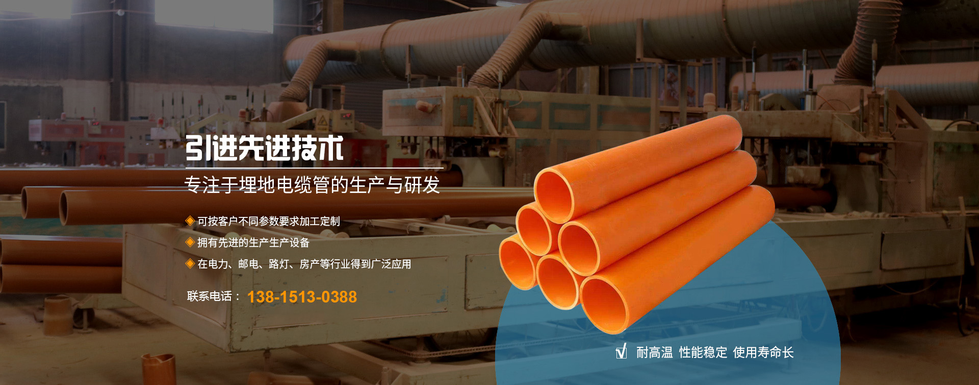 無(wú)錫邁力塑業(yè)科技有限公司地處長(zhǎng)江三角洲蘇錫常經(jīng)濟(jì)發(fā)達(dá)區(qū),坐落于江南名鎮(zhèn)--華士鎮(zhèn),緊鄰天下第一村“中國(guó)華西村”,緊靠沿江高速華西道口,距上海130公里、南京150公里,地理位置優(yōu)越,交通十分便捷。 本廠創(chuàng)辦于2010年,全廠職工總數(shù)為42名,工程師技術(shù)人員5名,擁有國(guó)內(nèi)先進(jìn)的錐形雙螺桿、單螺桿擠出生產(chǎn)線9條,是專業(yè)生產(chǎn)PE頂管、PVC-U埋地式普通電力電纜管套、PVC-C高壓電纜套管、MPP電纜套管等管材、管件、BWFRP電纜管拉擠纏繞管。 本廠研制生產(chǎn)的埋地電力通訊電...